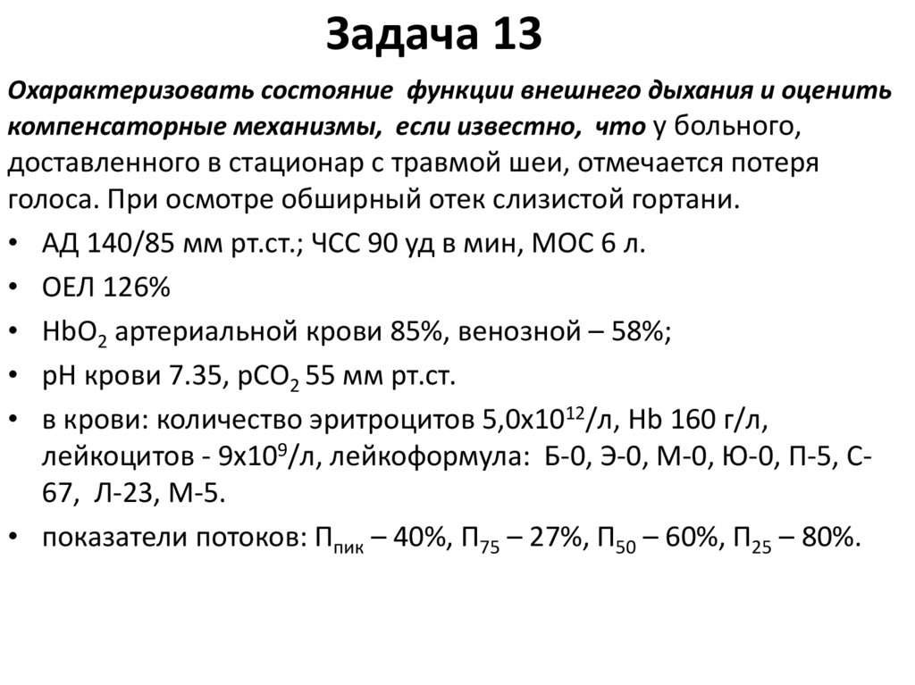 Задача 13Охарактеризовать состояние функции внешнего дыхания и оценить