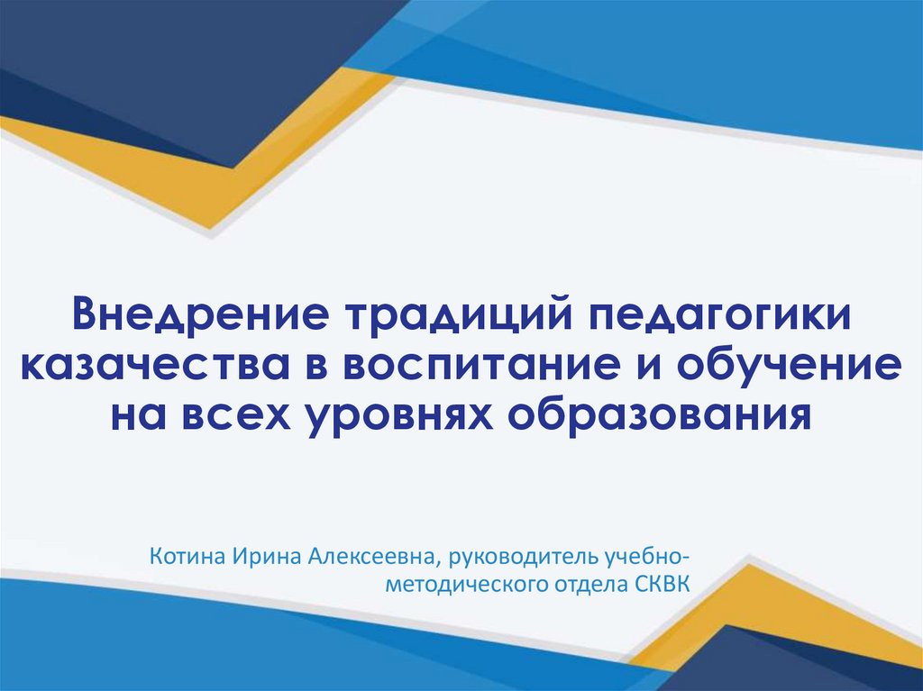Внедрение традиций педагогики казачества в воспитание и обучение на всех уровнях образования