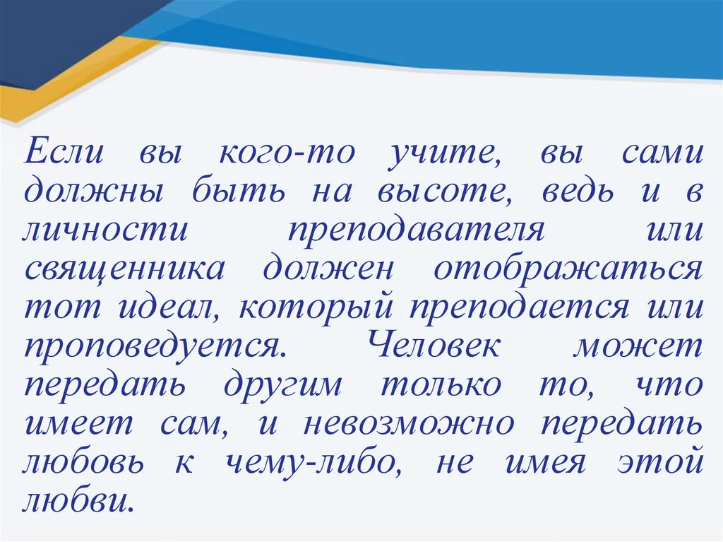 Если вы кого-то учите, вы самидолжны быть на высоте, ведь и в