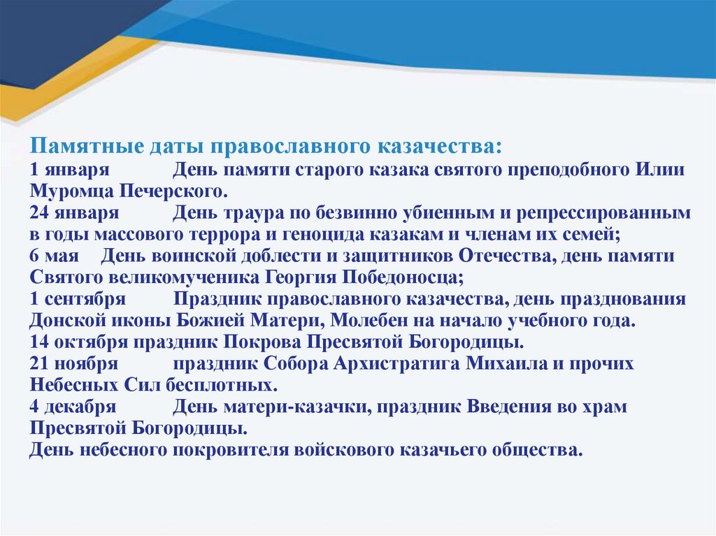 Памятные даты православного казачества:1 января