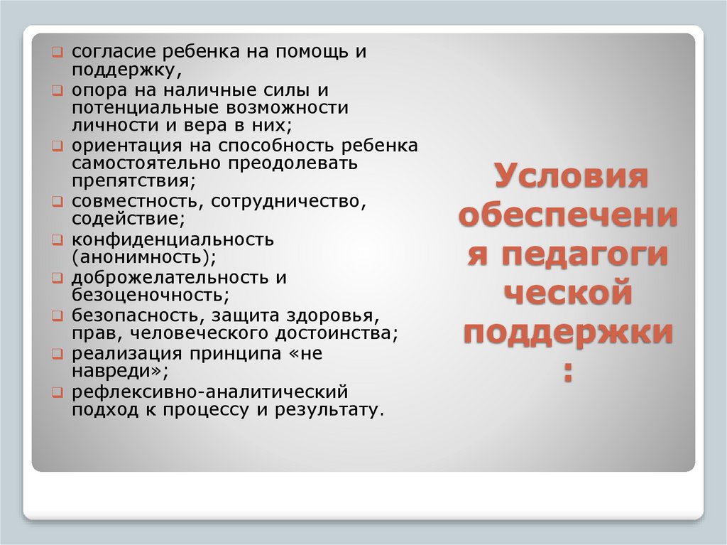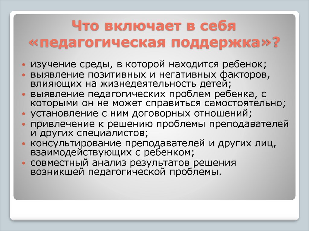 Что включает в себя«педагогическая поддержка»?