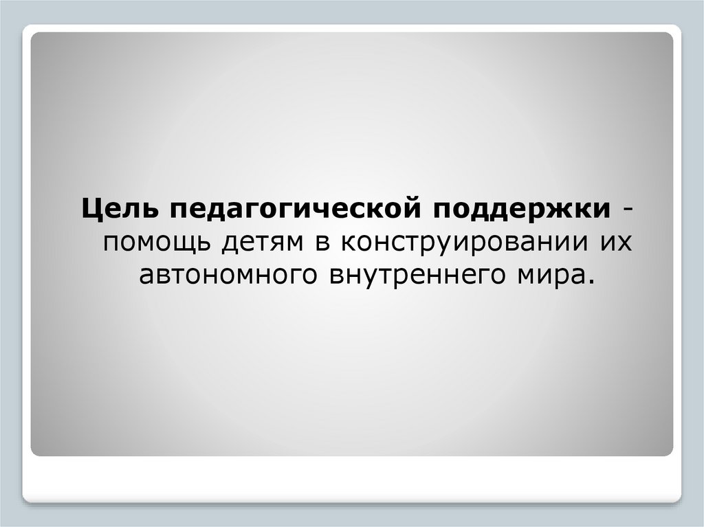 Цель педагогической поддержки помощь детям в конструировании ихавтономного внутреннего мира.