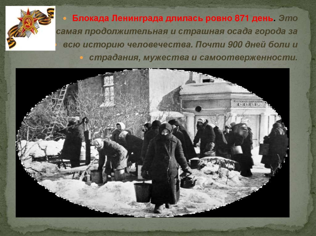 Блокада Ленинграда длилась ровно 871 день. Этосамая продолжительная и страшная осада города за