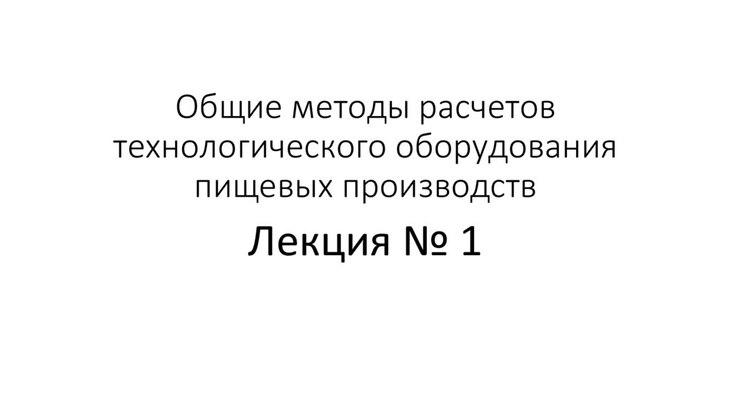 Общие методы расчетов технологического оборудования пищевых производств. Лекция № 1