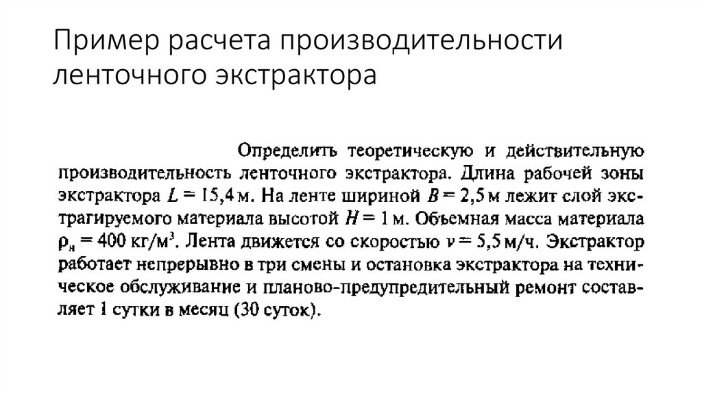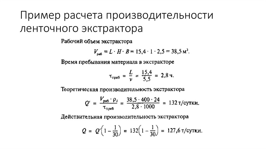 Пример расчета производительностиленточного экстрактора