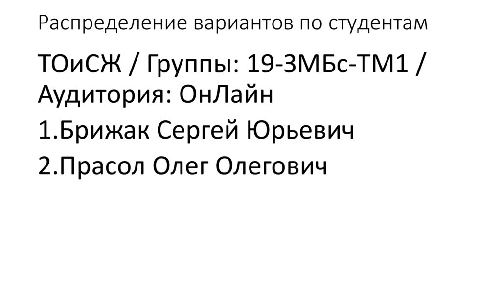 Распределение вариантов по студентамТОиСЖ / Группы: 19-ЗМБс-ТМ1 /