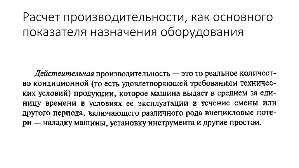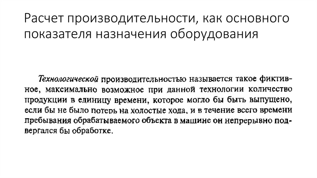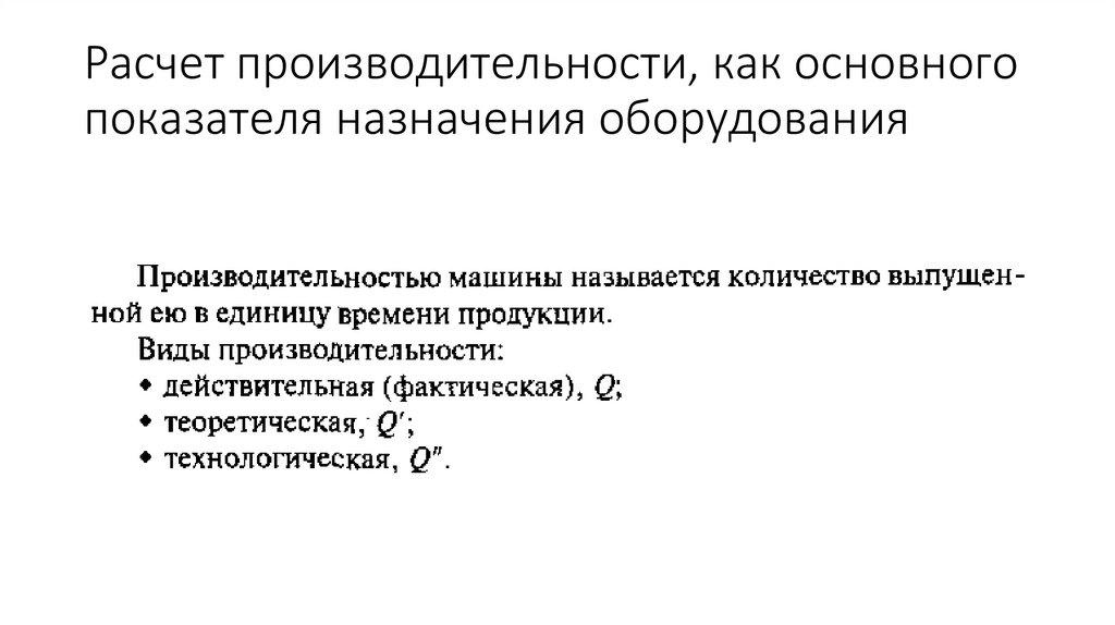 Расчет производительности, как основногопоказателя назначения оборудования