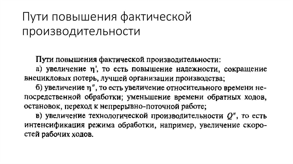 Пути повышения фактическойпроизводительности