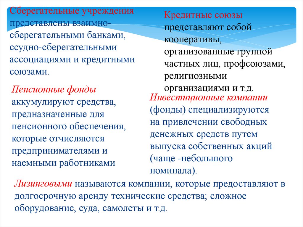 Сберегательные учрежденияпредставлены взаимносберегательными банками,