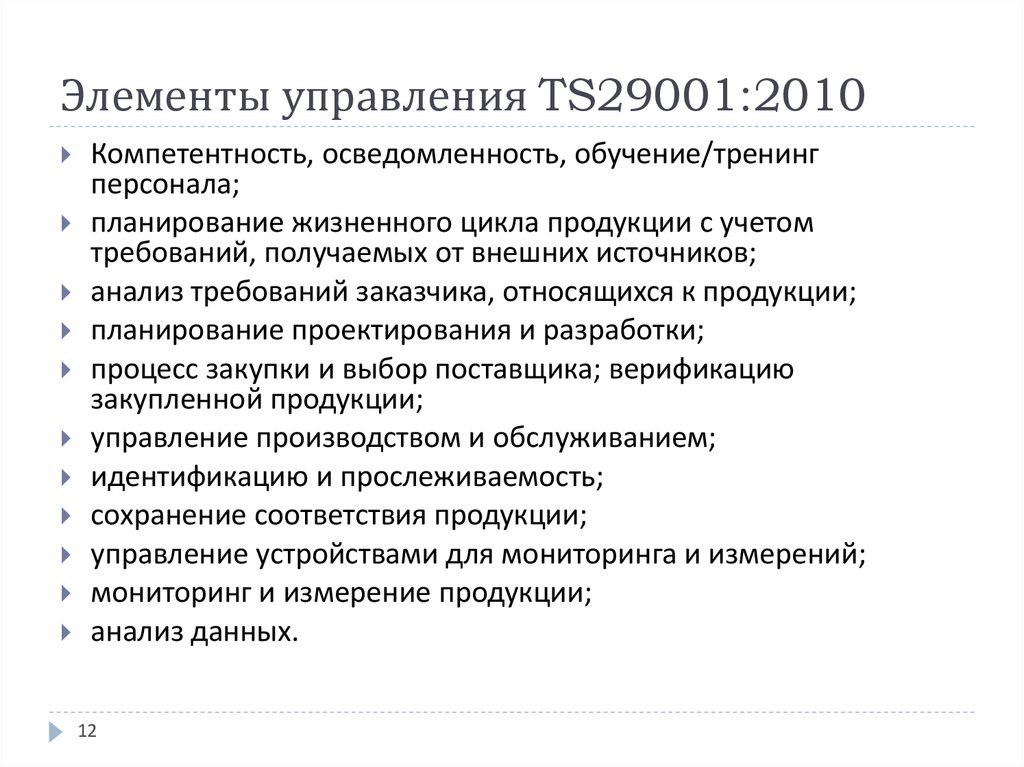 Элементы управления TS29001:2010Компетентность, осведомленность, обучение/тренинг