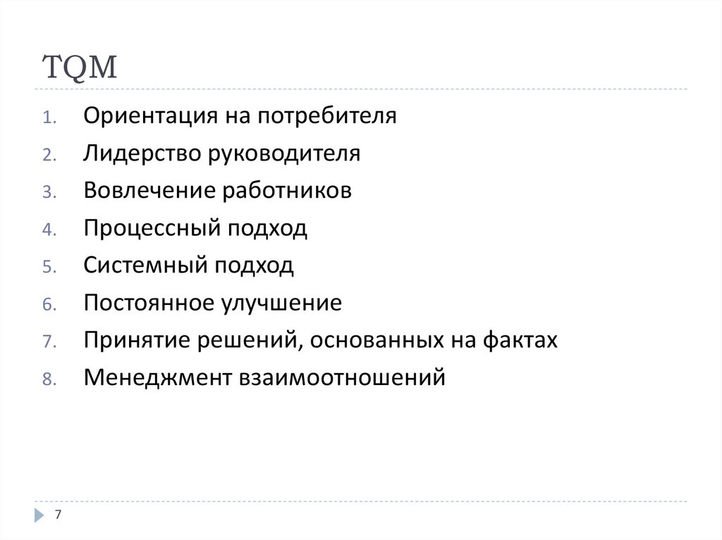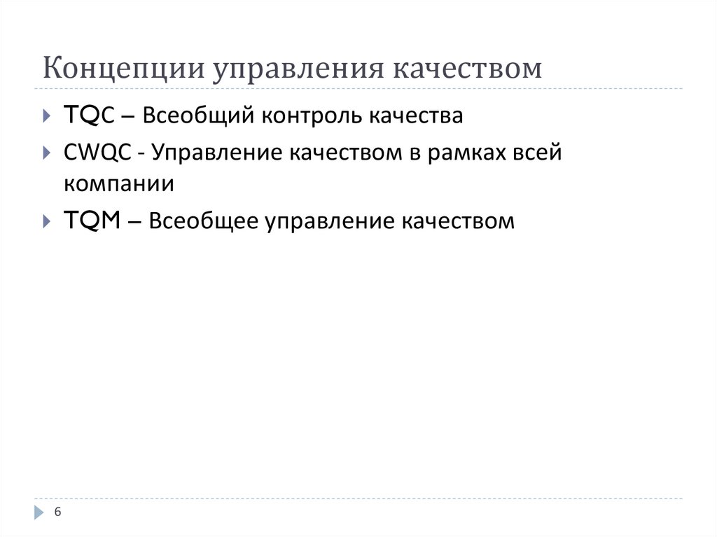 Концепции управления качествомTQС – Всеобщий контроль качества