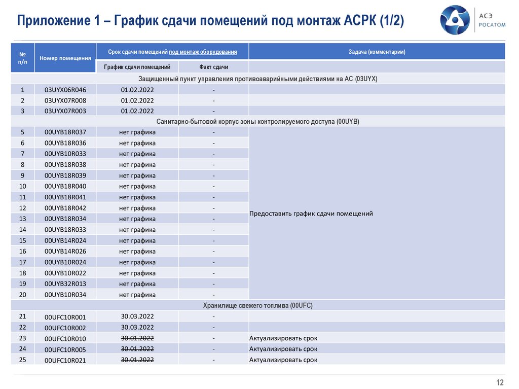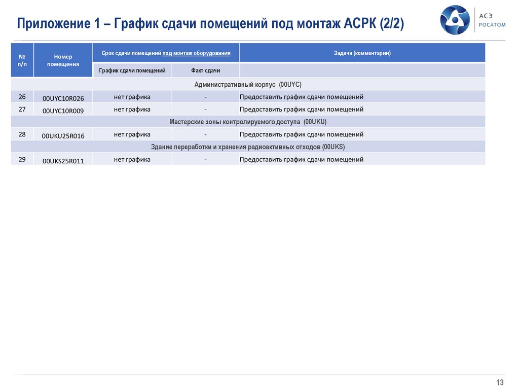 Приложение 1 – График сдачи помещений под монтаж АСРК (2/2)№