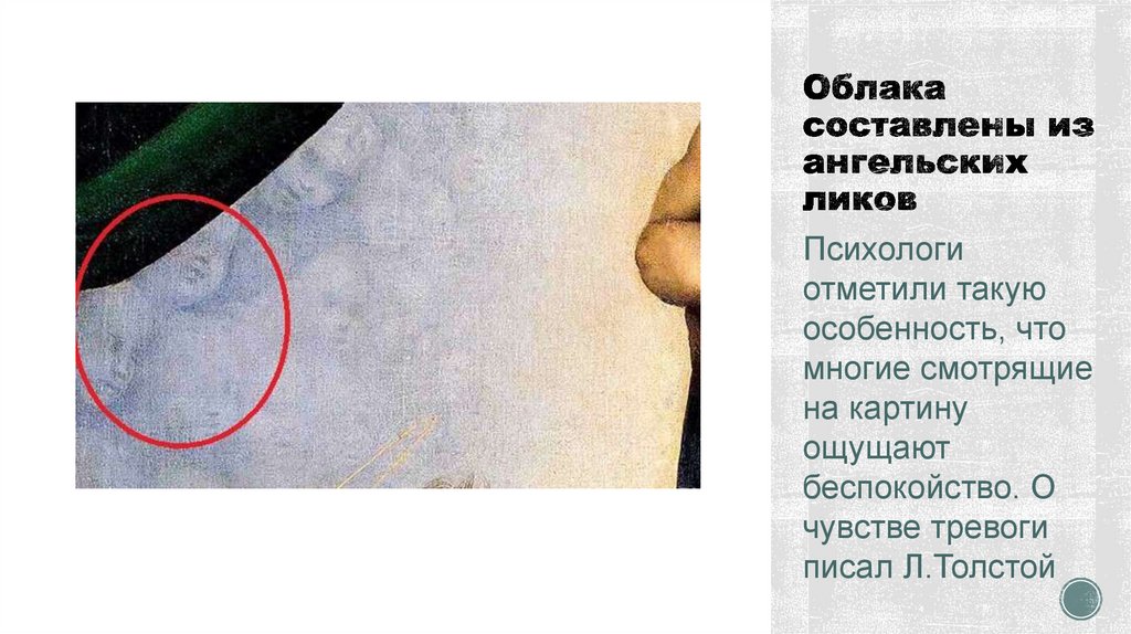 облакам. Мадонна смотрит прямо на зрителя,