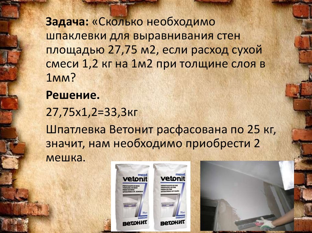 Задача: «Сколько необходимошпаклевки для выравнивания стен
