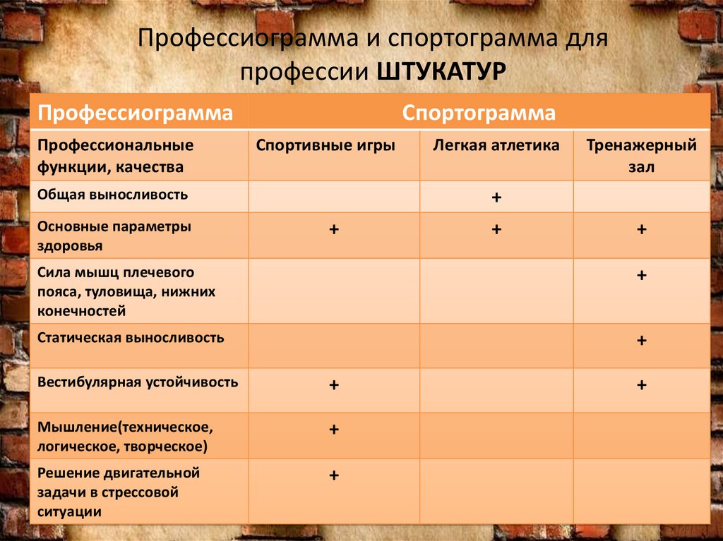 Профессиограмма и спортограмма дляпрофессии ШТУКАТУР