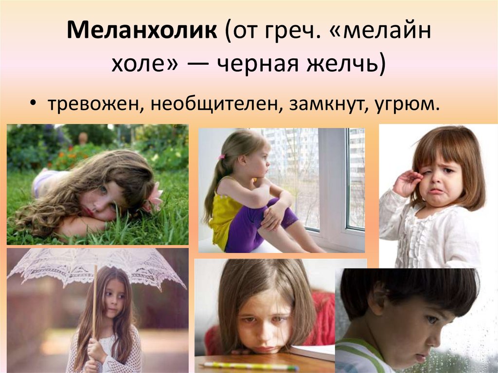 Меланхолик (от греч. «мелайнхоле» — черная желчь)
