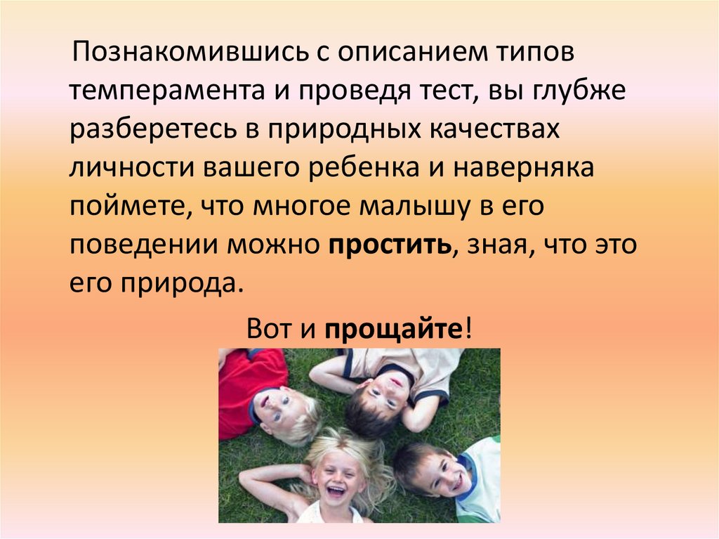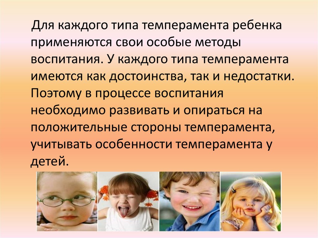 Для каждого типа темперамента ребенкаприменяются свои особые методы