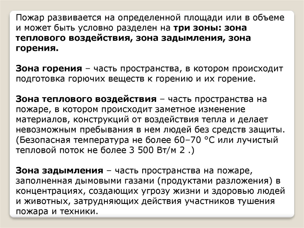 теплового воздействия, зона задымления, зона