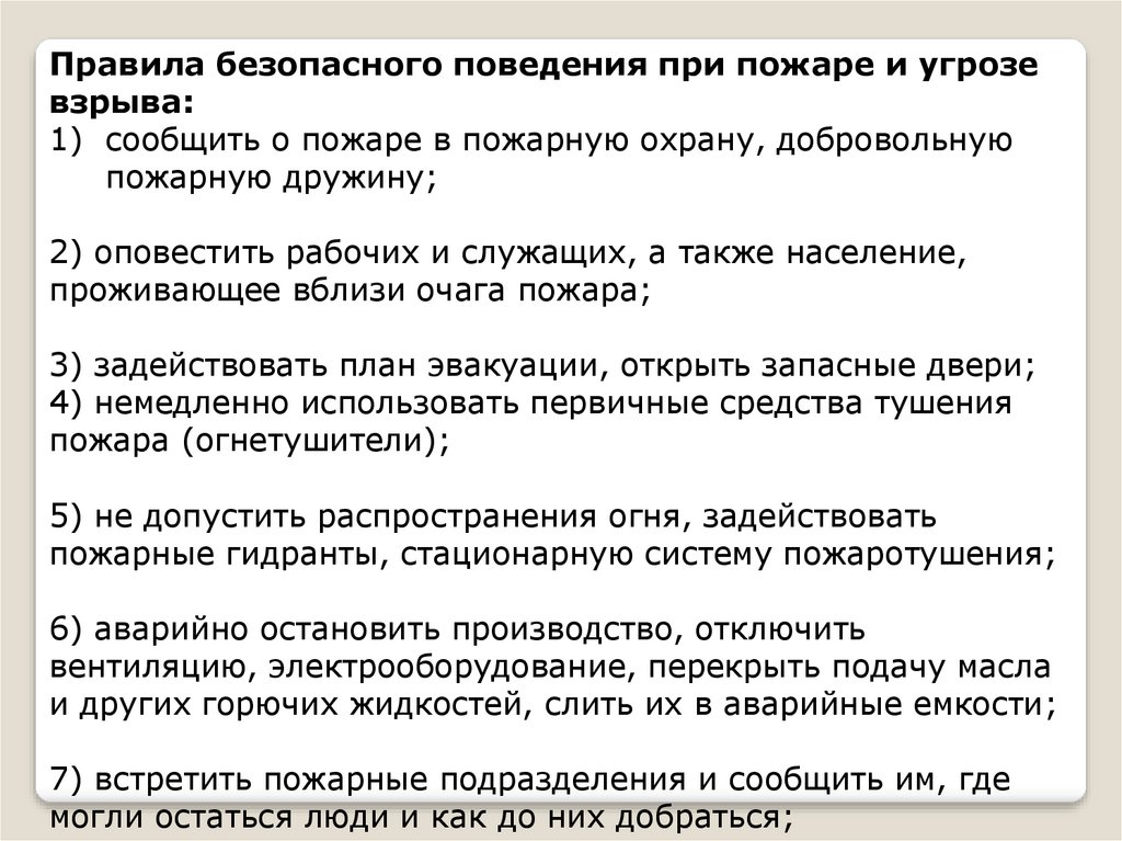 Правила безопасного поведения при пожаре и угрозевзрыва: