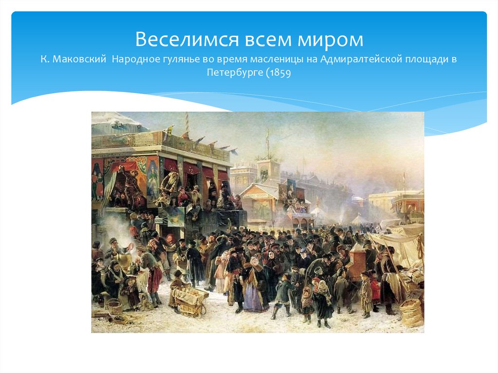 Веселимся всем миромК. Маковский Народное гулянье во время масленицы на Адмиралтейской площади в