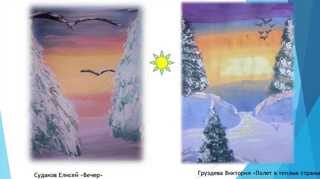 Судаков Елисей «Вечер»Груздева Виктория «Полет в теплые страны»