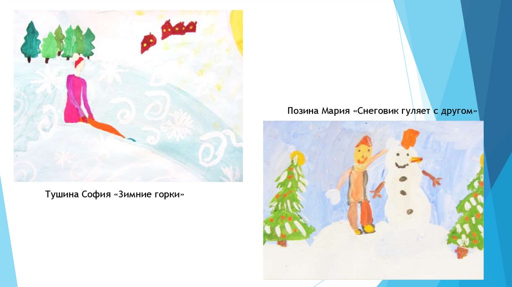 Позина Мария «Снеговик гуляет с другом»Тушина София «Зимние горки»