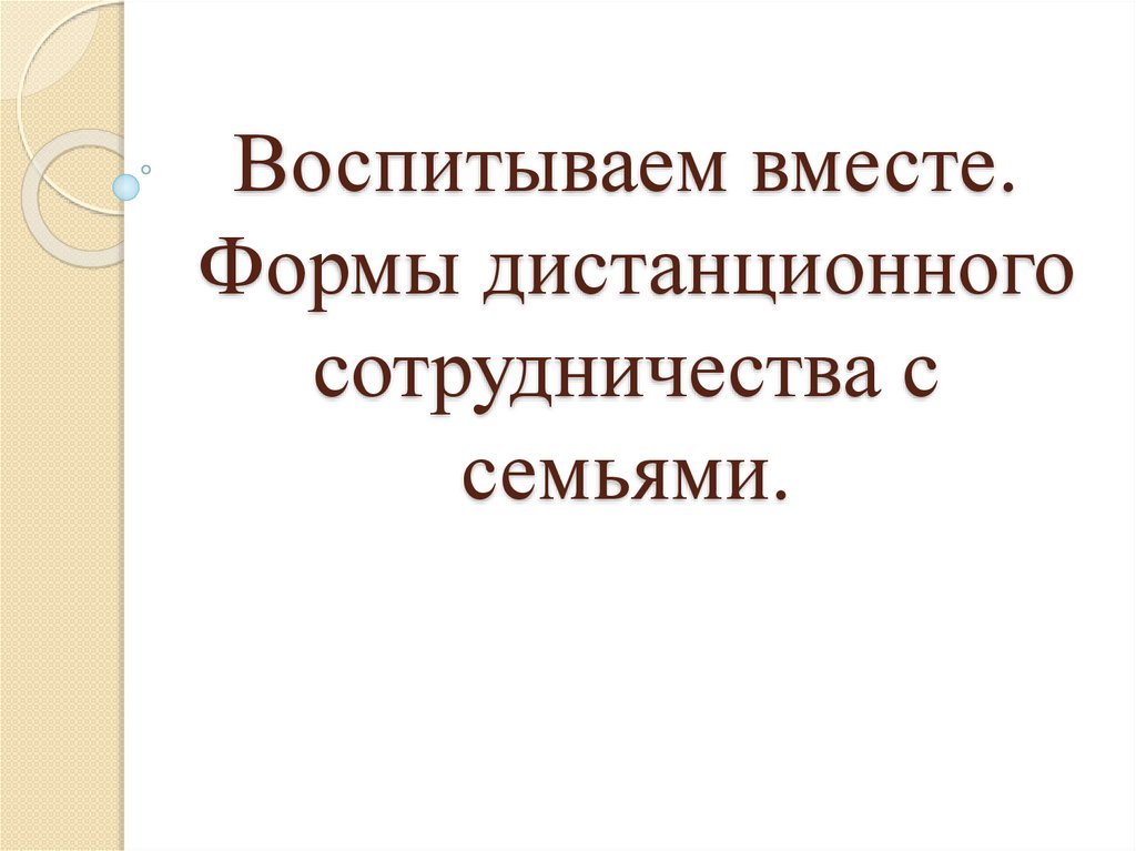 Воспитываем вместе. Формы дистанционного сотрудничества с семьями