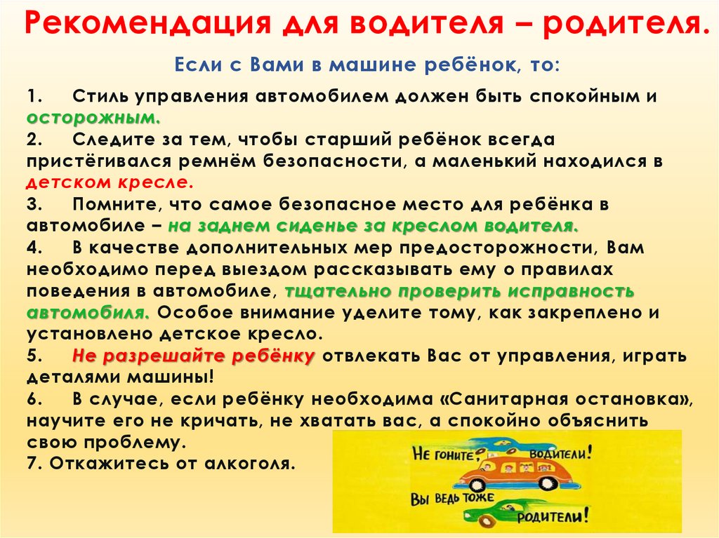 Рекомендация для водителя – родителя.Если с Вами в машине ребёнок, то: