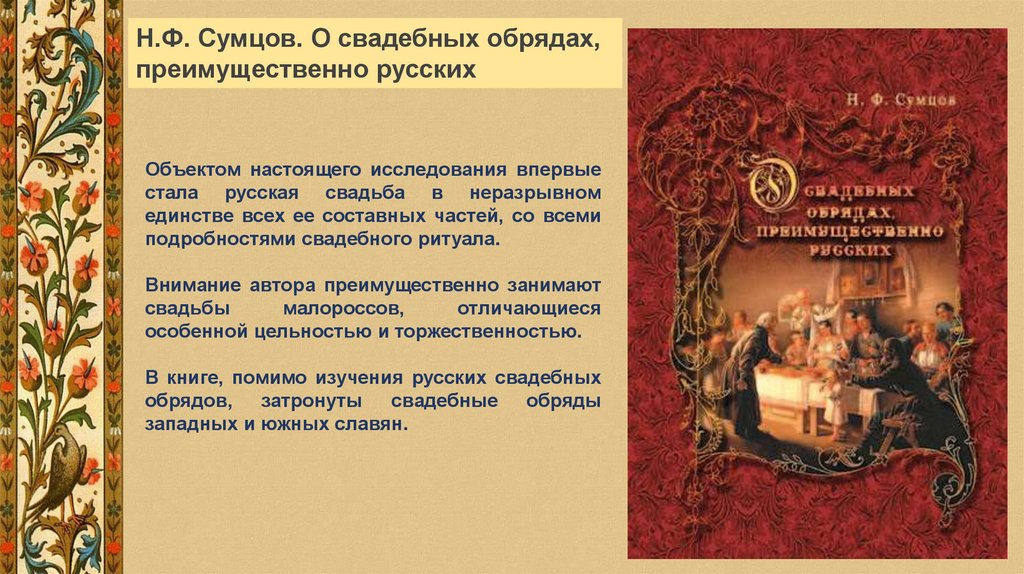 В книге, помимо изучения русских свадебных