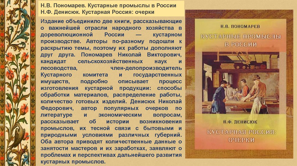 Н.В. Пономарев. Кустарные промыслы в РоссииН.Ф. Денисюк. Кустарная Россия: очерки