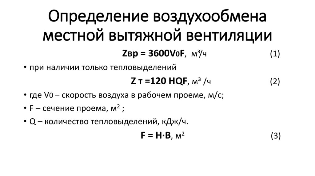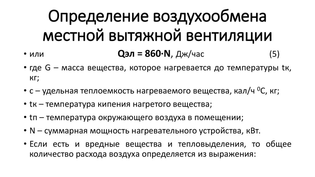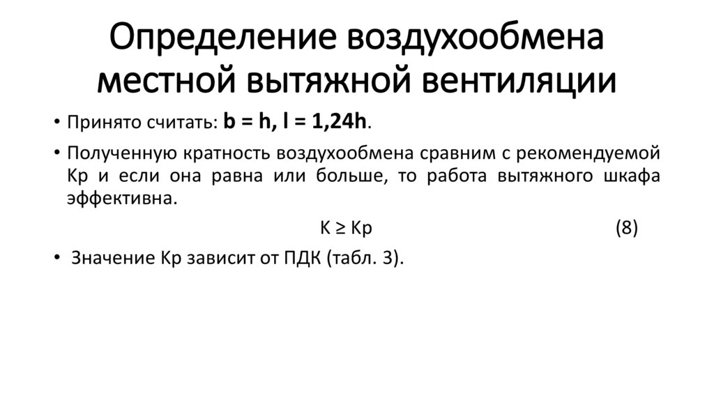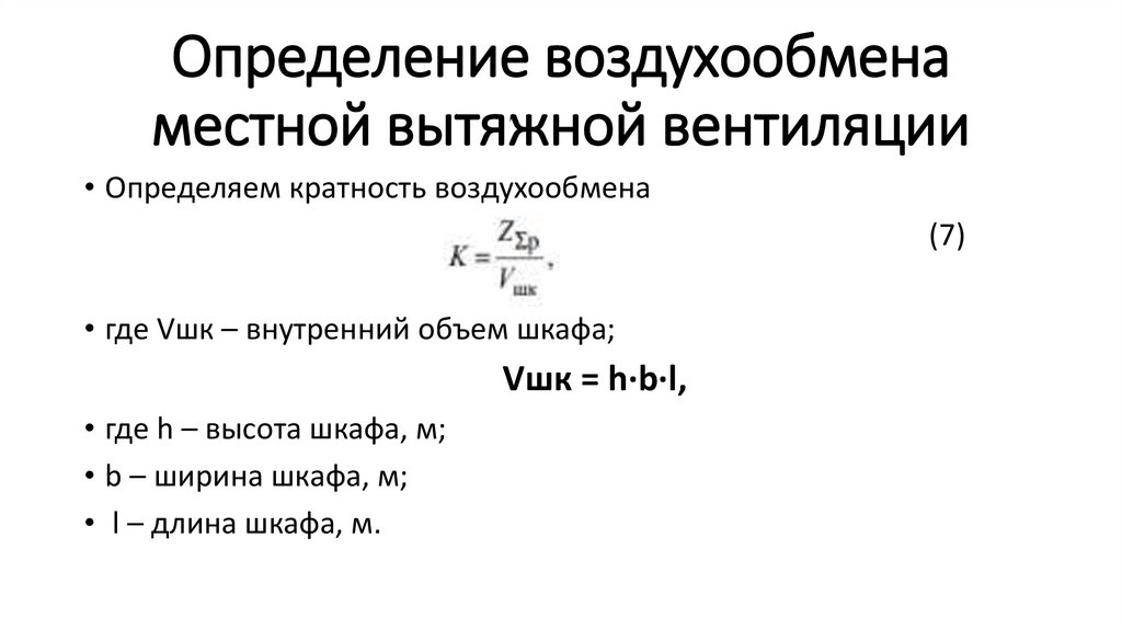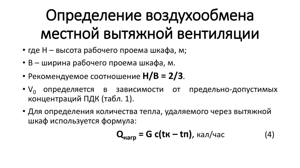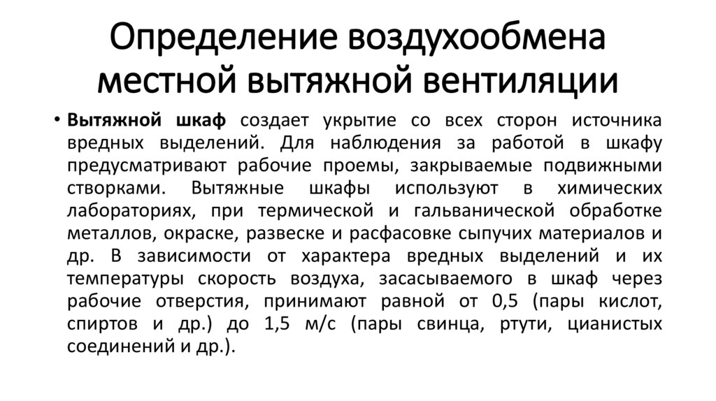 Определение воздухообменаместной вытяжной вентиляции