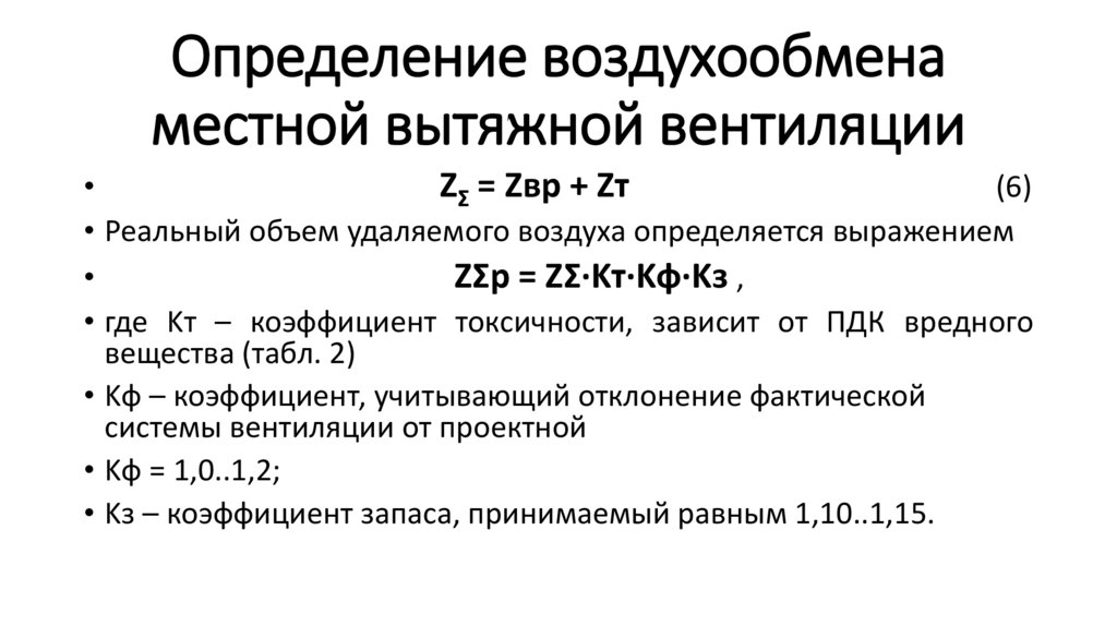 • Методика расчета воздухообмена местной вытяжной вентиляции.