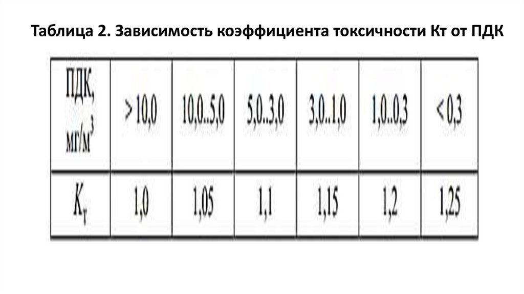 концентраций ПДК (табл. 1).