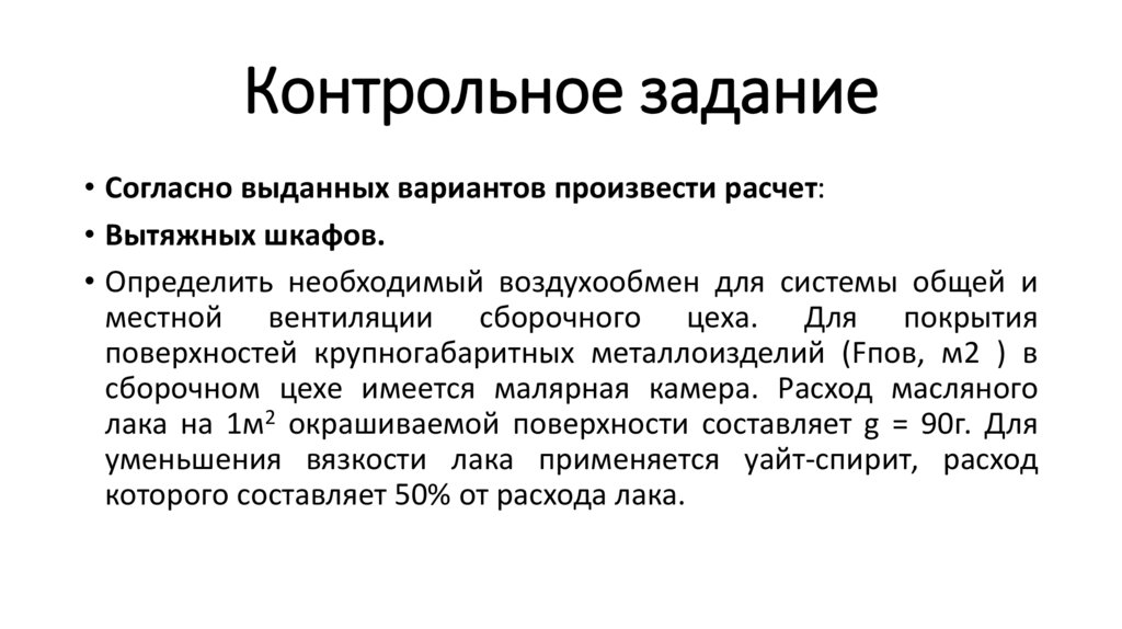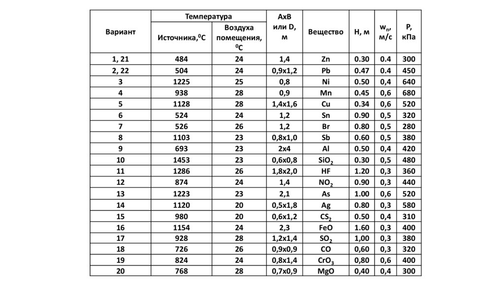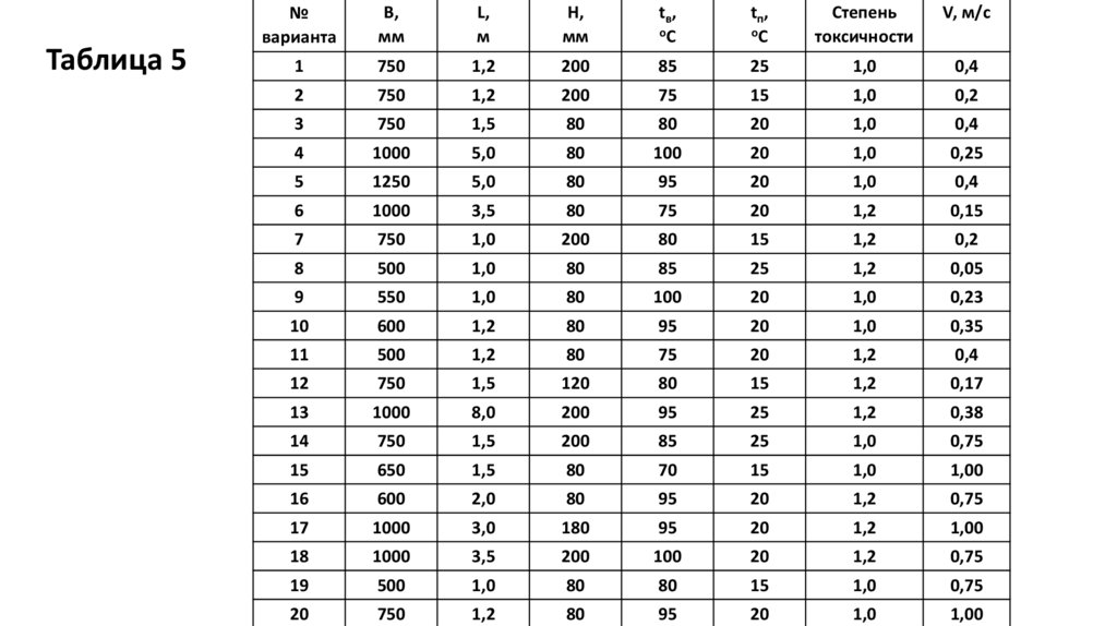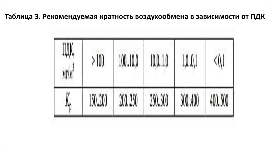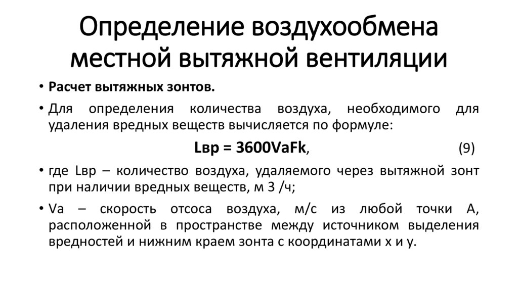 • Расход воздуха при наличии только вредных веществ (паров, газов,