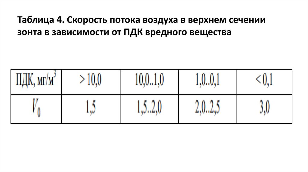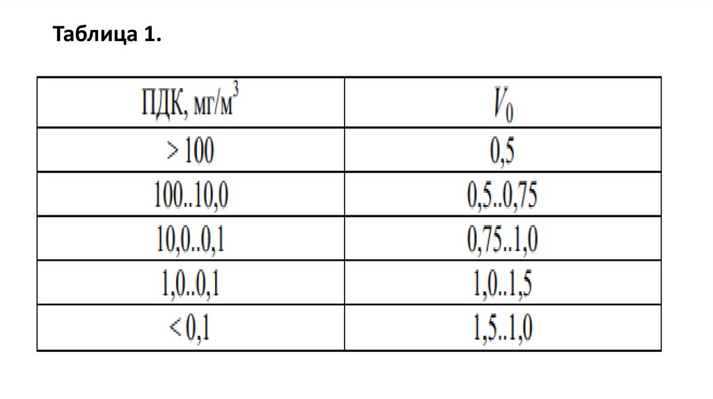 • V0 определяется в зависимости от предельно-допустимых