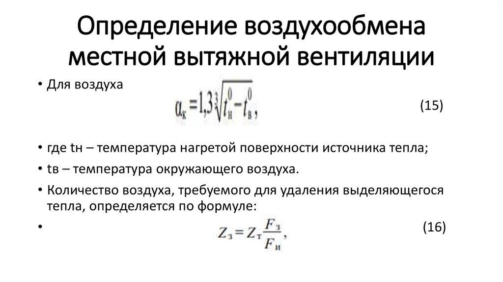 Определение воздухообмена местной вытяжной вентиляции