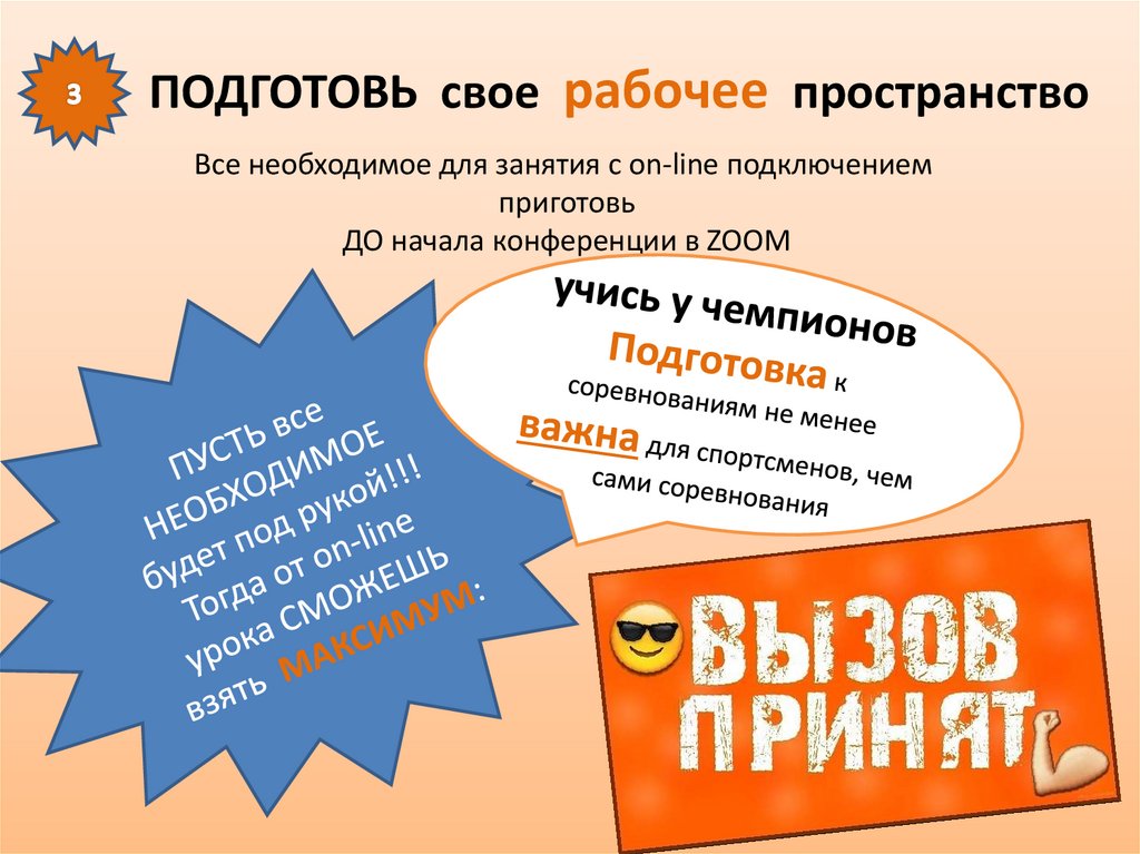 ПОДГОТОВЬ свое рабочее пространствоВсе необходимое для занятия с on-line подключением