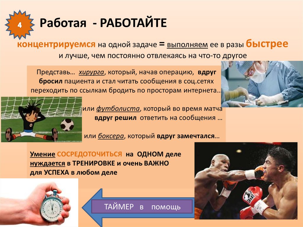 Работая - РАБОТАЙТЕконцентрируемся на одной задаче = выполняем ее в разы быстрее