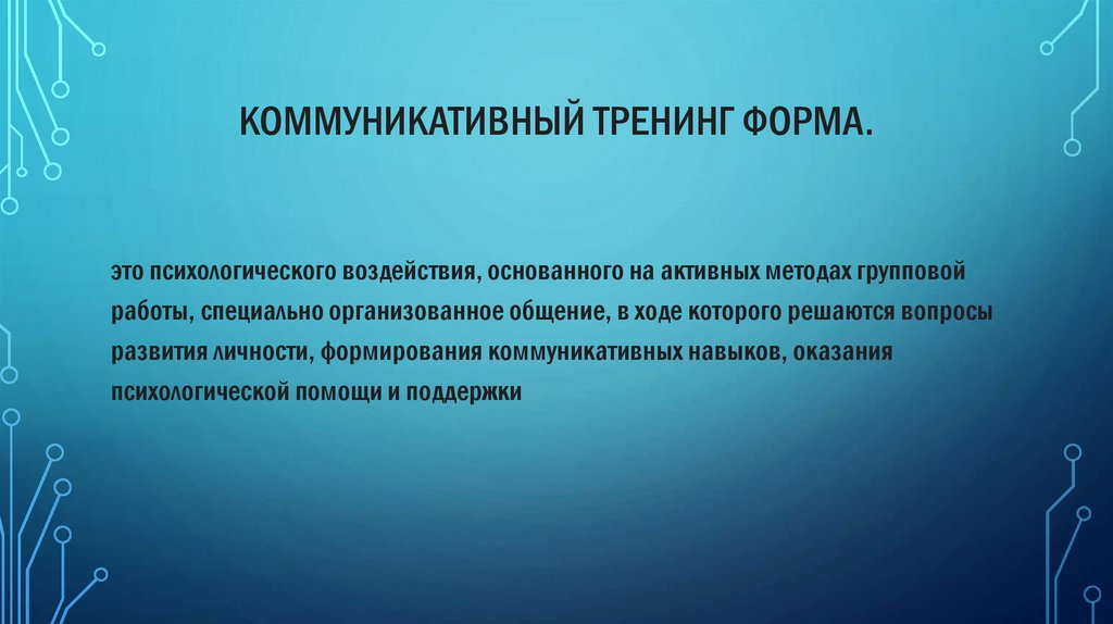 КОММУНИКАТИВНЫЙ ТРЕНИНГ ФОРМА.это психологического воздействия, основанного на активных методах групповой