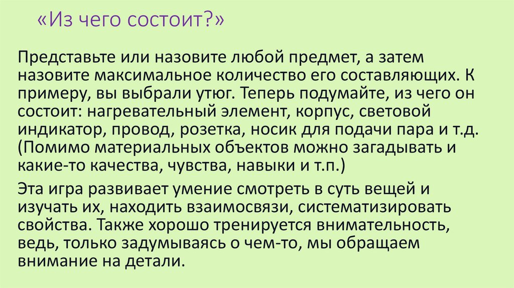 «Из чего состоит?»Представьте или назовите любой предмет, а затем