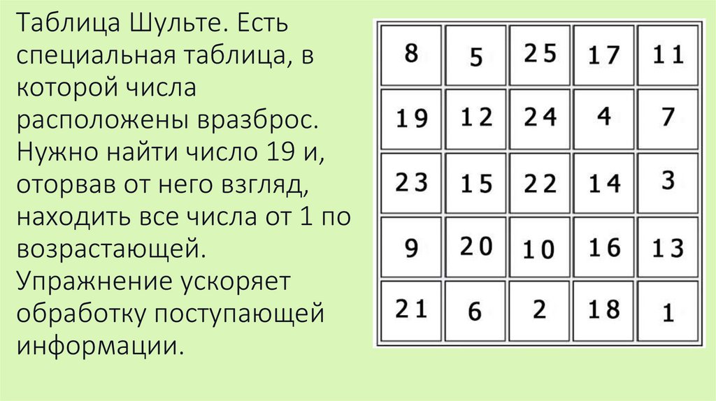 Таблица Шульте. Естьспециальная таблица, в