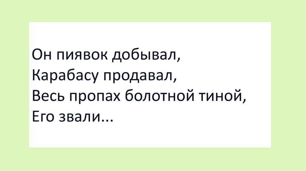 Он пиявок добывал,Карабасу продавал,