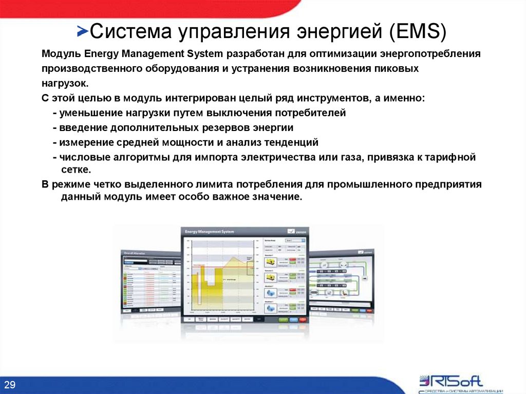 Система управления энергией (EMS)Модуль Energy Management System разработан для оптимизации энергопотребления