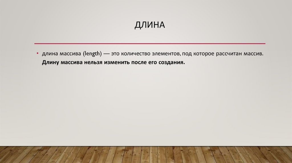 ДЛИНА• длина массива (length) — это количество элементов, под которое рассчитан массив.