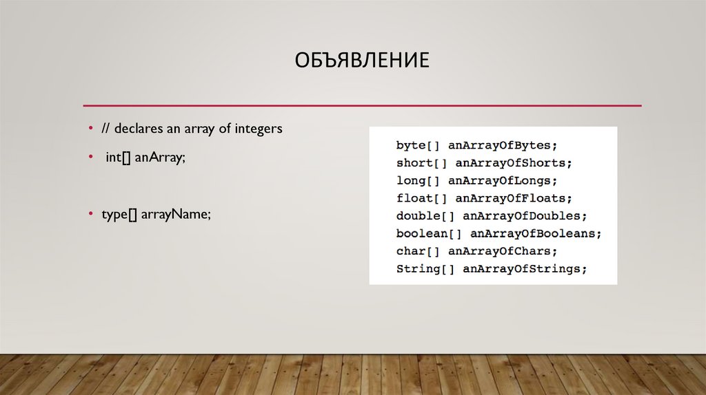ОБЪЯВЛЕНИЕ• // declares an array of integers