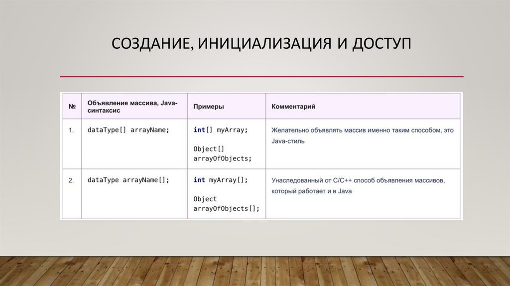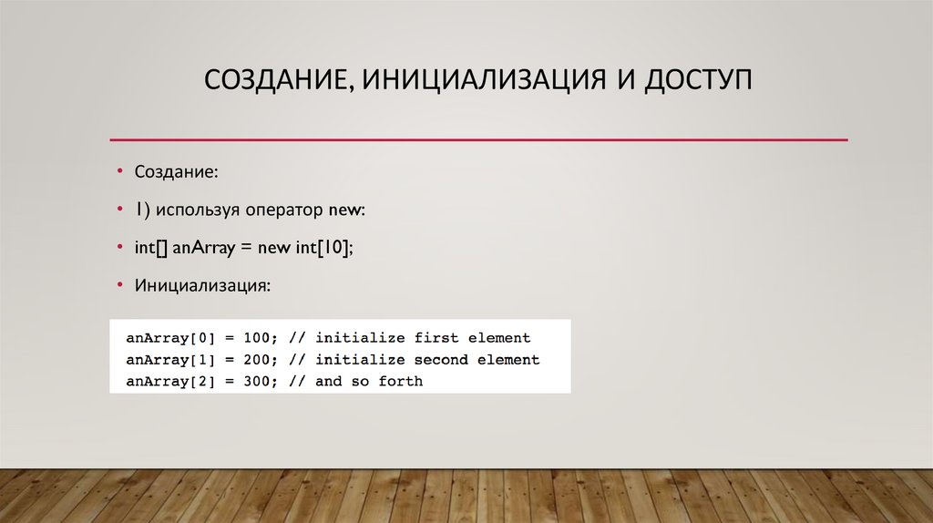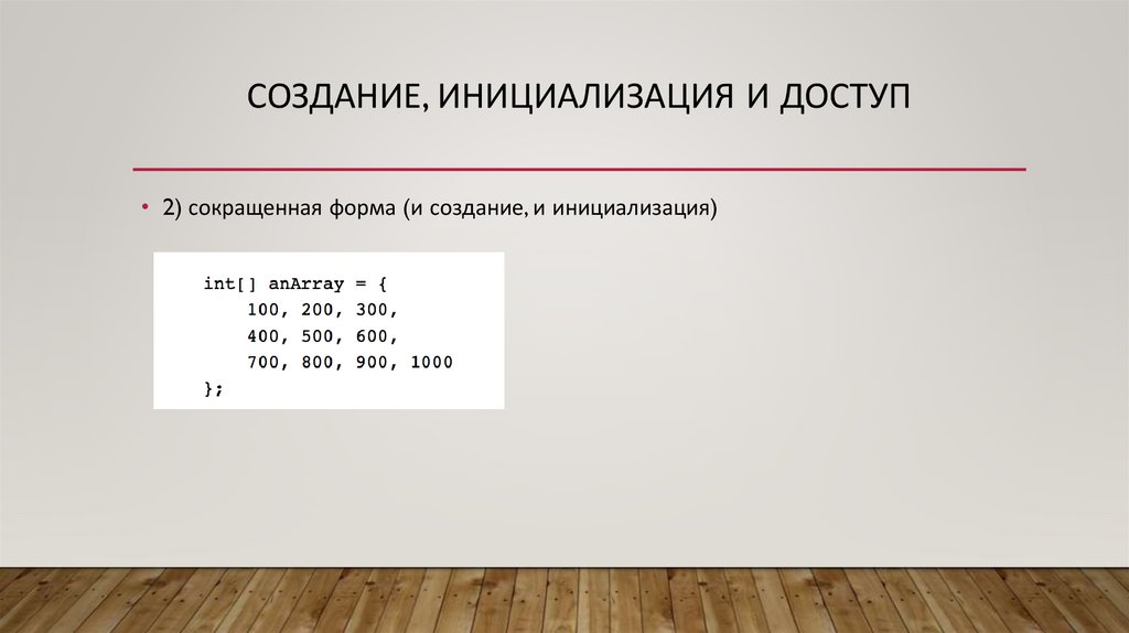 СОЗДАНИЕ, ИНИЦИАЛИЗАЦИЯ И ДОСТУП• 2) сокращенная форма (и создание, и инициализация)