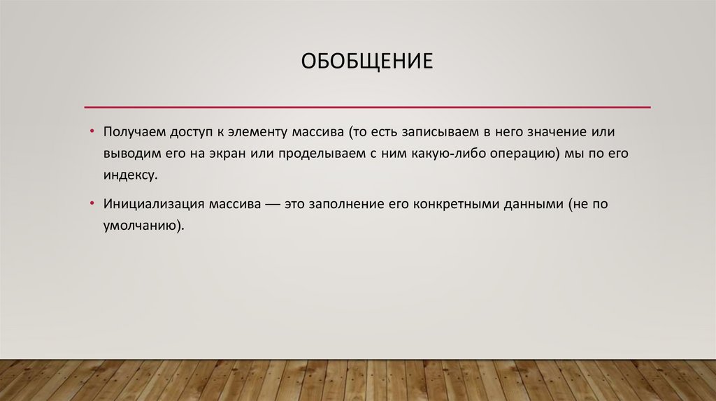 ОБОБЩЕНИЕ• Получаем доступ к элементу массива (то есть записываем в него значение или