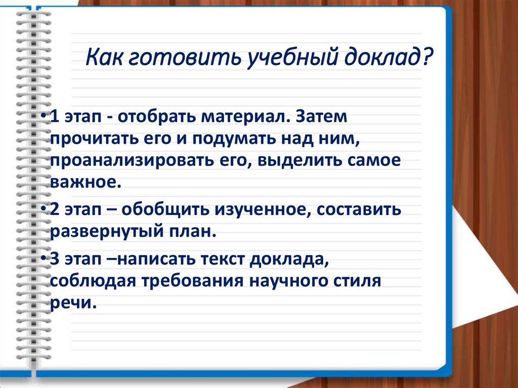 Как готовить учебный доклад?• 1 этап - отобрать материал. Затем