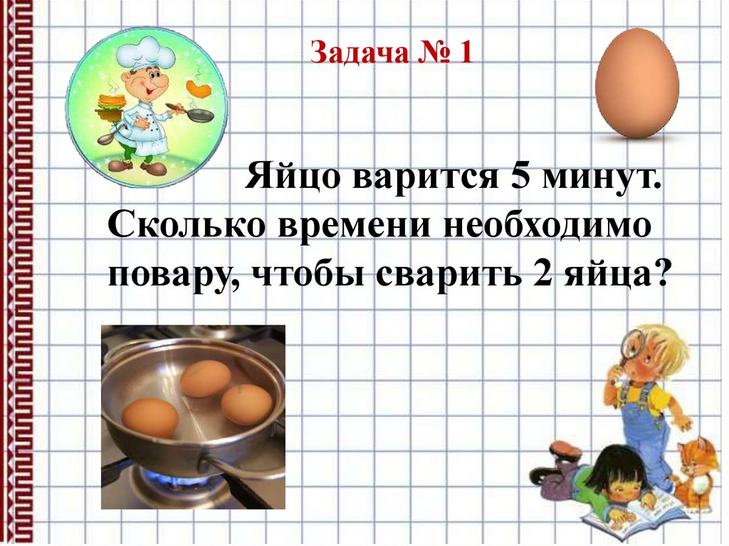 Задача № 1Яйцо варится 5 минут.