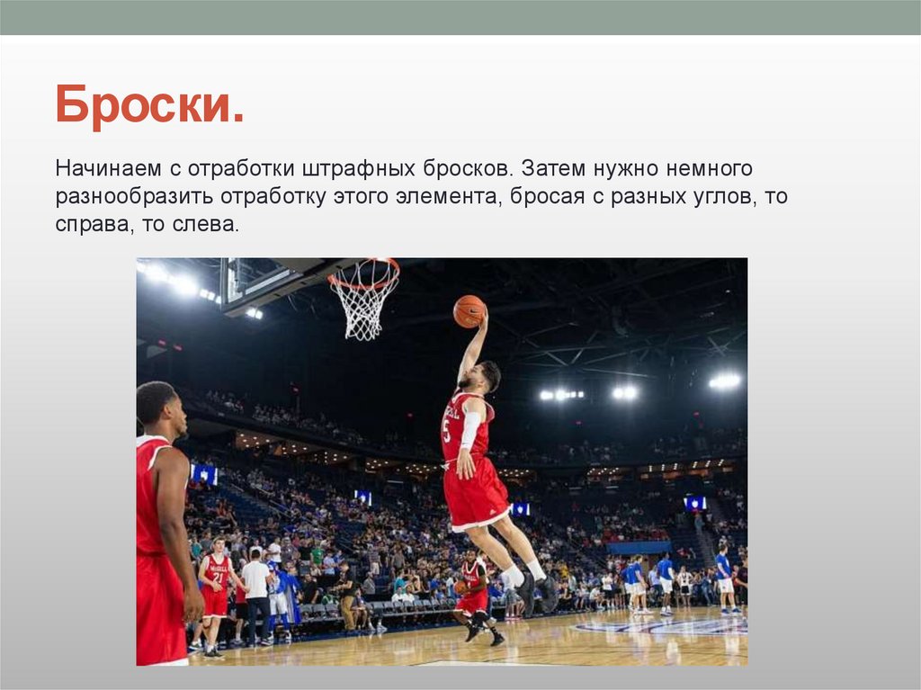 Броски.Начинаем с отработки штрафных бросков. Затем нужно немного